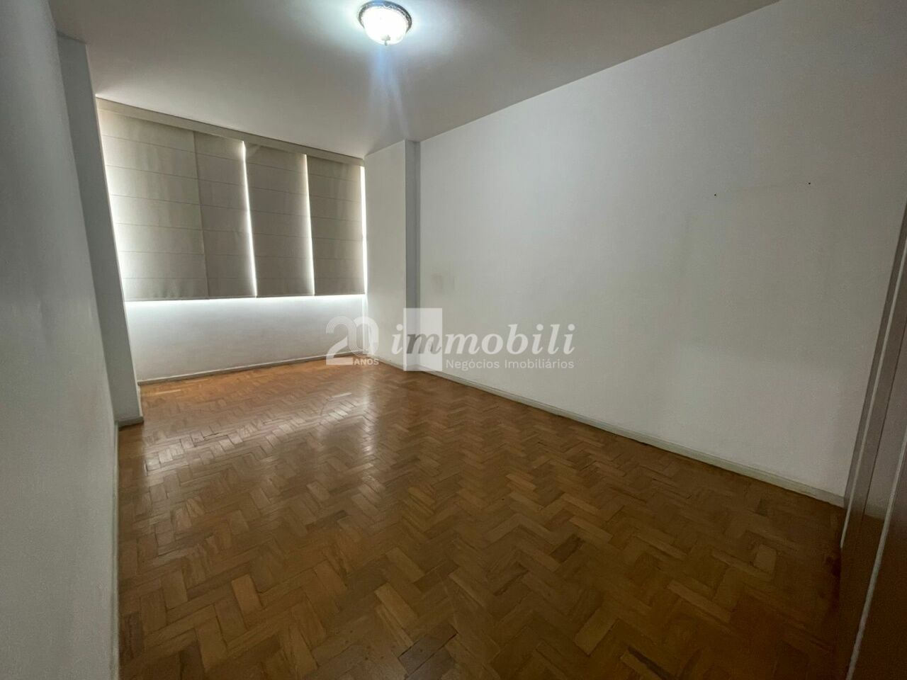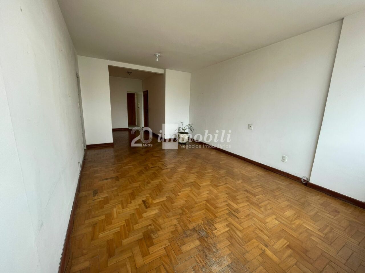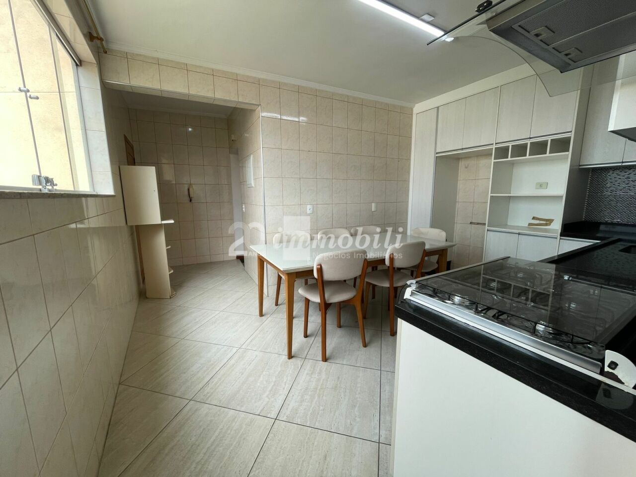 Apartamento reformado com sacada, cozinha, sala, banheiro.
